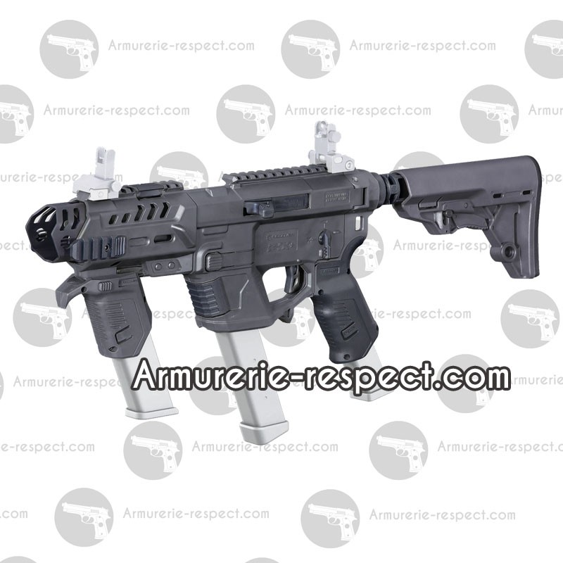 Optimisez les performances de votre pistolet Glock avec cette conversion AR haute qualité, conçue pour offrir une ergonomie de type AR et une compatibilité avec les accessoires AR standard. Facile et rapide à installer, elle s’adapte à de nombreux modèles Glock et transforme votre arme de poing en plateforme plus stable et polyvalente. Équipée d’un sélecteur de sécurité et d’une détente réglable, elle permet un contrôle précis et personnalisé. Ses multiples rails de fixation, dont des rails latéraux SR20 droit et gauche, ainsi que son garde-main avant en métal, offrent de nombreuses options pour le montage d’accessoires. La crosse pliable avec tube BTP Mil-Spec assure un encombrement réduit et un confort optimal, tandis que la fabrication en polymère renforcé garantit robustesse et légèreté. Enfin, la poignée PG9 intègre un porte-chargeur pratique pour une efficacité maximale sur le terrain.